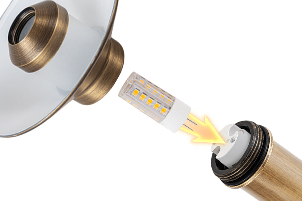 Unscrew the upper part, put the G4 bulb into the socket, no need to replace whole housing. (4W G4 LED bulb included)
