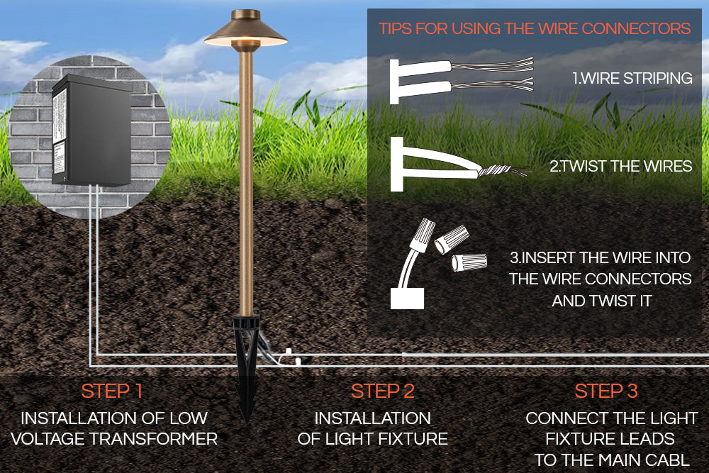 Work with AC/DC, safe for children and pets. With 70.9" wire and waterproof wire connectors easy to connect to landscape systems.